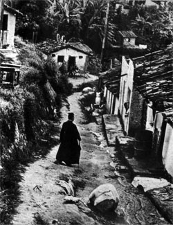 На следующий день к вечеру все закупки были сделаны. Когда мы проходили через гостиную, Фред вдруг остановился, удивленно глядя на гипсового святого Христофора в углу. Что это случилось со скульптурой? Младенец за спиной куда-то пропал, на его месте из правого плеча святого торчала большая деревянная затычка. Н-да, по меньшей мере странная картина. Я хотел подойти поближе — разглядеть как следует это чудо, но меня опередили. Сзади отворилась дверь, и мимо меня к гипсовой фигуре просеменила хозяйка. В руках у нее был пропавший младенец. Она бережно посадила его на затычку (очевидно, в нем имелось соответствующее углубление) и опустилась на колени у ног святого.