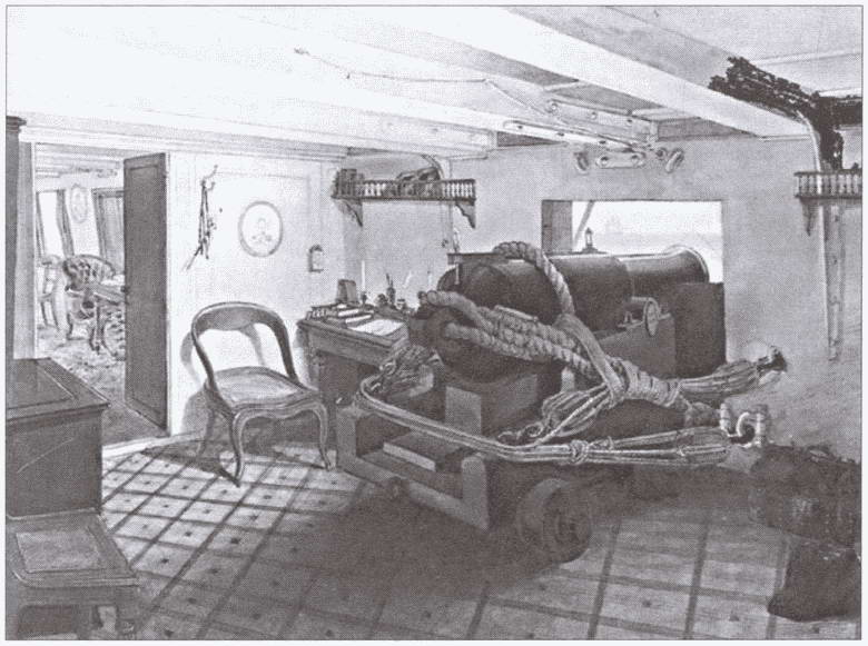Орудийный каземат фрегата «Ослябя». Художник А.К. Беггров