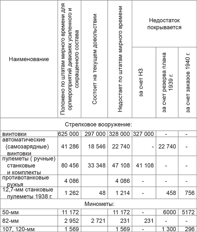 Это по штатам мирного времени! Недостающее вооружение требовалось еще изготовить, поставить армии и обучить личный состав владеть им.