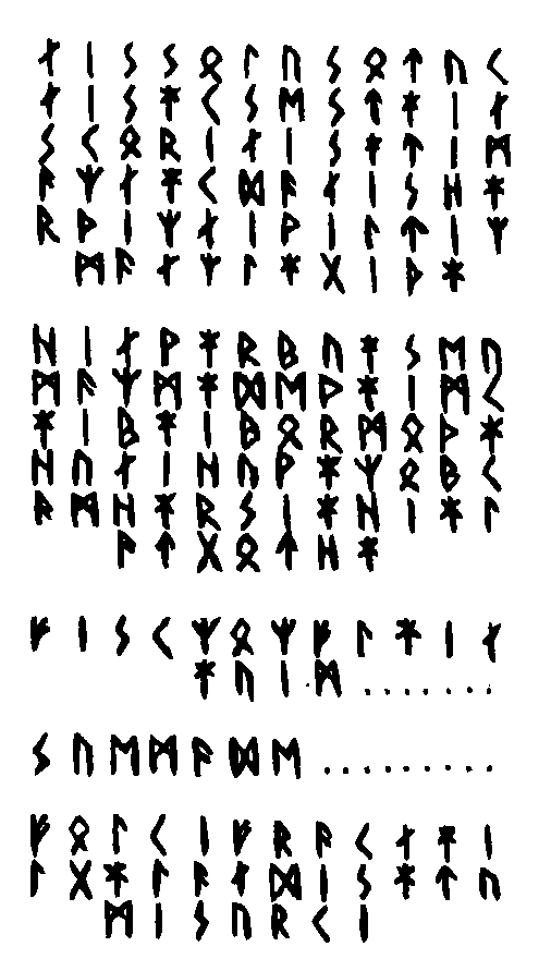 Многие надписи старшими рунами не поддаются расшифровке, что, собственно говоря, вовсе не удивительно, ибо, судя по всему, магические рунические надписи вообще не предполагались для прочтения.