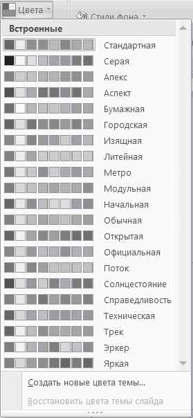 1. На вкладке Дизайн выберите команду Темы Цвета (рис. 11.7).