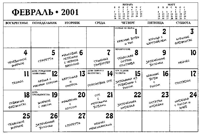 ПРИМЕРНОЕ МЕСЯЧНОЕ МЕНЮ
