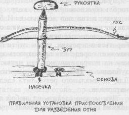 Как если вы хоть раз прокатитесь на велосипеде, вы уже никогда абсолютно не потеряете этот навык. Пробуйте снова и снова с различным материалом и при различных погодных условиях. Если вы овладели луком и буром, вы подчинили себе огонь. И помните, что «если вы можете добыть огонь, вы — всесильны».