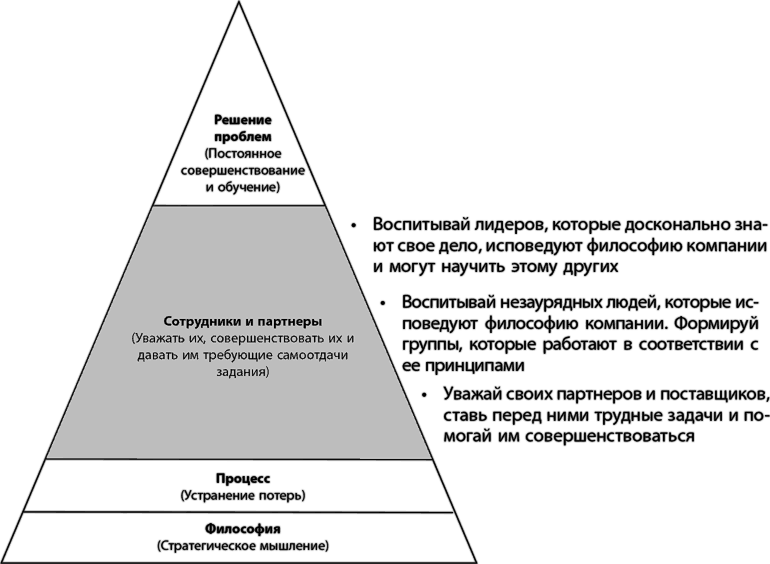 В соответствии с подходом Toyota лидер должен соблюдать еще один важный принцип – укреплять из года в год производственную культуру компании, обеспечивая существование обучающейся структуры. В западных компаниях происходит постоянная смена лидеров, никто из них не задерживается в должности достаточно долго, чтобы сформировать зрелую культуру, соответствующую его личным представлениям. (В главе 22 рассказывается о передовых компаниях, которые являются исключениями из этого правила [30] .) Изменение производственной культуры с приходом каждого нового лидера означает резкие перемены поверхностного характера, которые не позволяют коренным образом изменить отношение сотрудников к своей работе и завоевать их доверие. Череда аутсайдеров, каждый из которых заново ломает культуру, не дает возможности сформировать обучающуюся структуру – в такой ситуации организация не может опираться на опыт собственных достижений и ошибок или выработать сколько-нибудь устойчивые принципы. Это влияет и на способность лидера осуществлять эффективные изменения. Для Toyota же, если использовать слова Деминга, свойственно «постоянство целей», которые являются едиными для всей компании, а это основа для стабильного, позитивного управления и для формирования условий обучения на собственном опыте.