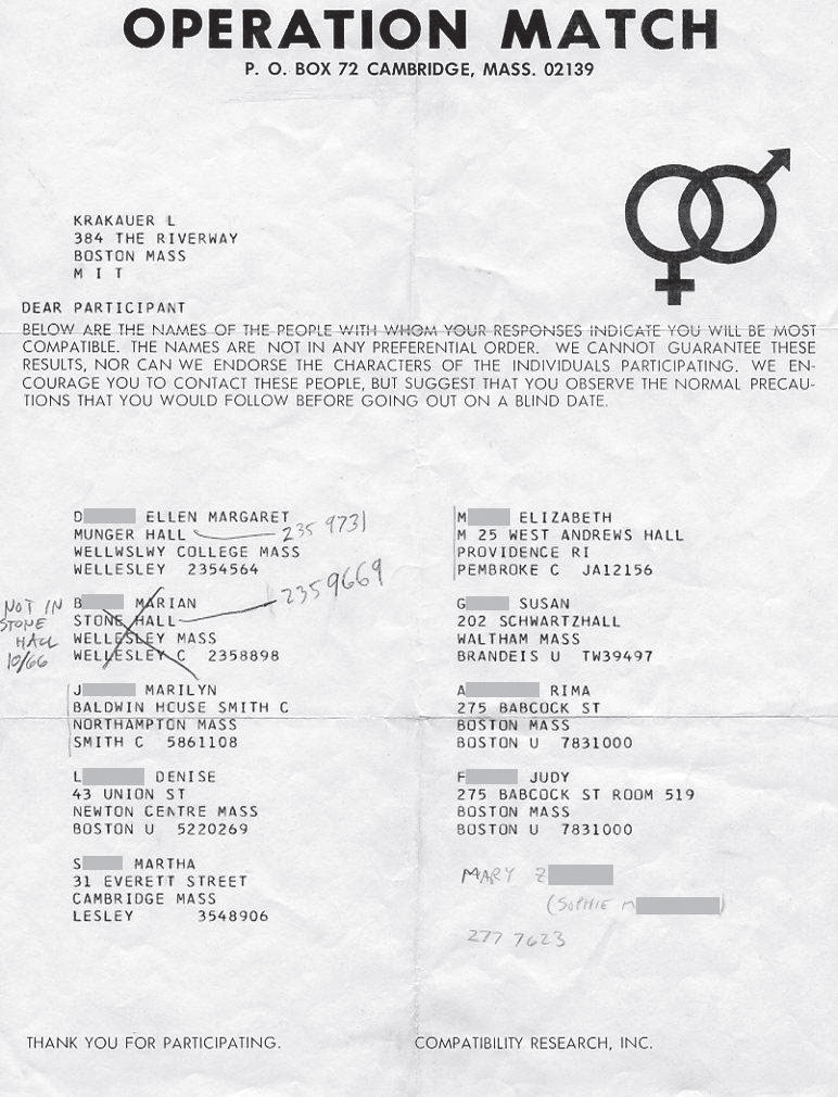Я использовал Operation Match три года подряд и получил три разных письма, а потом переключился на Data-Mate – скорее всего потому, что это был сервис, разработанный в MIT, не в Гарварде.