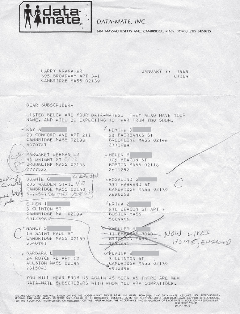 Первый раз я использовал такой сервис в 1965-м, и это был Operation Match, а не Data-mate. Вот первое письмо, которое я получил в октябре того года: