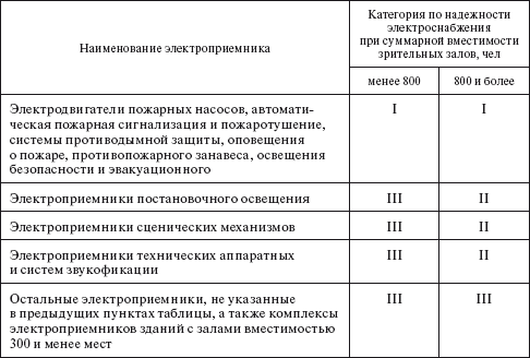 Категории электроприемников зрелищных предприятий по надежности электроснабжения