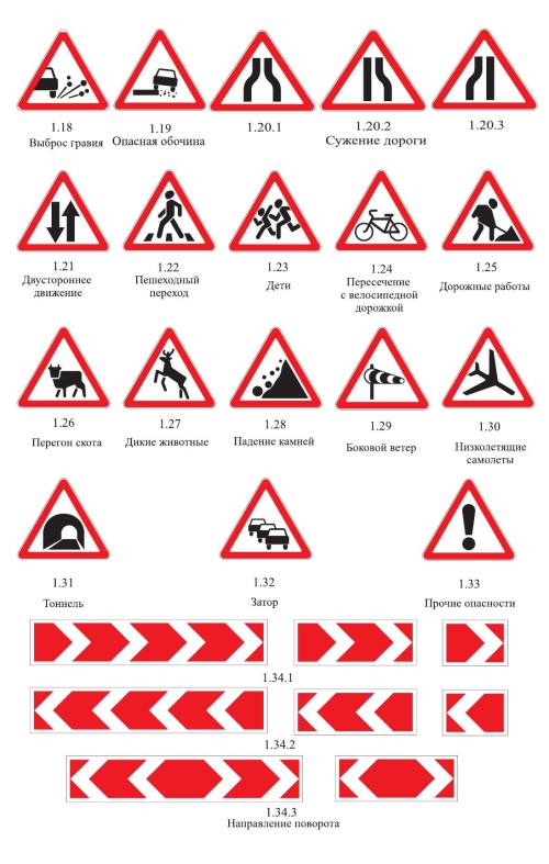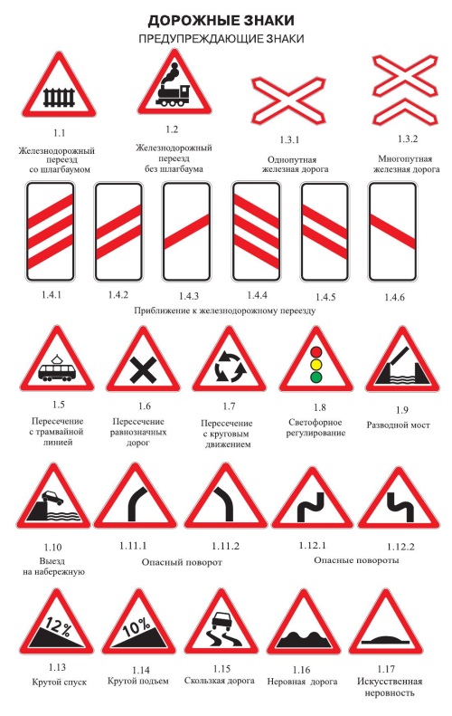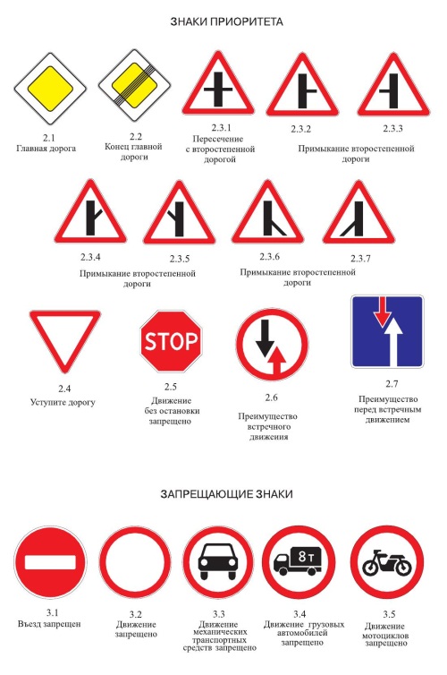 Здесь и далее приводится нумерация дорожных знаков согласно приложению 1.