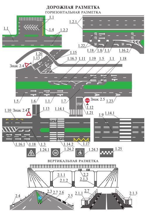 Здесь и далее приводится нумерация дорожной разметки согласно приложению 2.