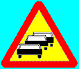 1.38 "Заторы в дорожном движении". Участок дороги, где сужение проезжей части служит причиной заторов в дорожном движении вследствие выполнения дорожных работ ли по другой причине.