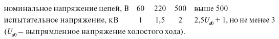 Ответ. Должна выдерживать в течение 1 мин следующее испытательное напряжение переменного тока частотой 50 Гц: