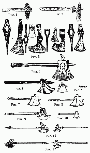 Овладение железной рудой обострило наметившиеся еще в бронзовом веке тенденции и привело к созданию многочисленных вариантов топора (рис. 3).