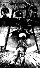 Бородіна кинуло на палубу, палючим вогнем обпекло груди. Той вогонь далі не повз, і, хоч боліло нестерпно, Бородін сів, приголомшено дивлячись на криваву пляму, що швидко розповзалась на сорочці. На палубі тим часом уже застигли дві сіро-блакитні тіні, виставивши вперед стволи коротких автоматів. А по штормтрапу один по одному мовчки піднімалися люди в таких же сіро-блакитних комбінезонах, так само озброєні, з байдужими масками на обличчях. Прибульці мовби й не дивилися на рибалок, проте нікого не випускали з поля зору, тримаючи зброю напоготові.