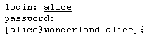 Далее мы обсуждаем пользовательницу Алису, имеющую учетную запись alice на машине wonderland и знающую свой пароль (мы его не знаем).