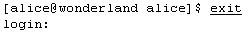 Таким образом Алиса завершила свой первый сеанс работы в системе, состоящий из одной команды выхода. Этой командой заканчивается любой сеанс работы в системе, хотя не всегда она подается в явном виде.
