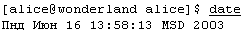 которая подавалась (вводилась) без аргументов. Вот еще две команды, которые могут подаваться без аргументов: «date», «cal». Обе они относятся к датам календаря.Команда «date» (Рис. 1-3) выводит текущую дату и время.