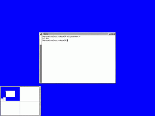 Вы уже обратили внимание на то, что при запуске «Просвещения» на экране появилось еще одно окно. Это так называемый пейджер (pager), на Рис. 2-6 он изображен крупным планом. На пейджере представлена миниатюрная копия экрана, обновляющаяся в режиме реального времени, причем, если подвести курсор к изображению отдельного окна, оно увеличивается и рядом высвечивается название приложения, запущенного в нем. Но почему экран занимает только четверть окна пейджера? Потому что оконный менеджер позволяет оперировать «виртуальным столом, по размеру превышающим физический экран, а пейджер – одно из средств перемещения физического экрана по рабочему столу. Enlightenment позволяет создавать до 64 экранов на рабочем столе.