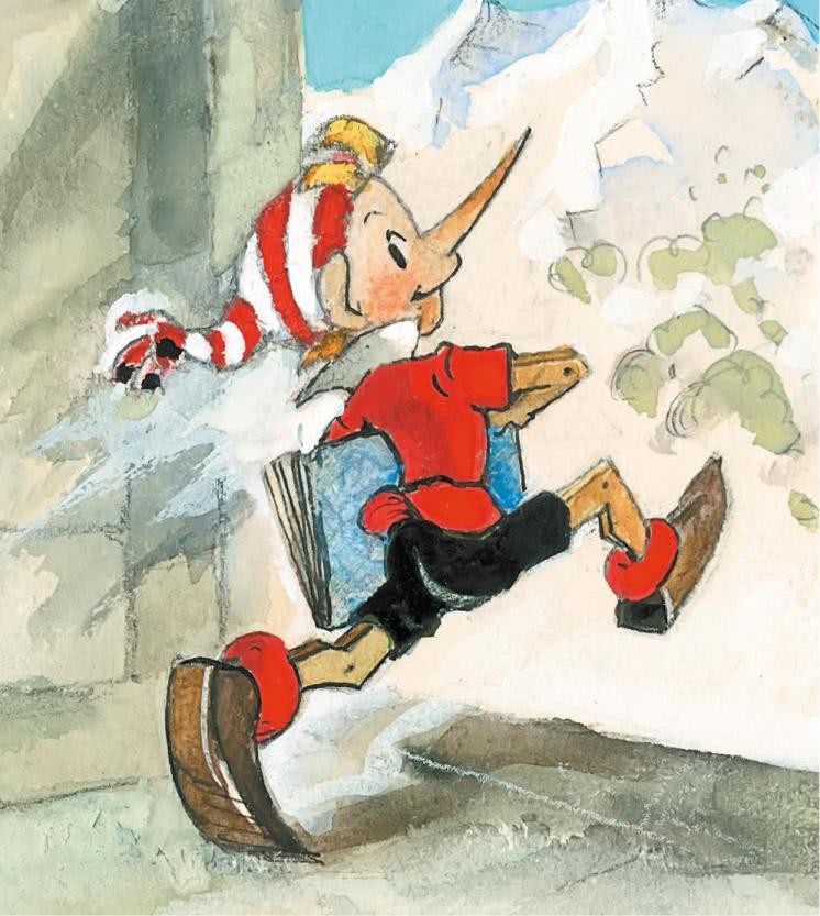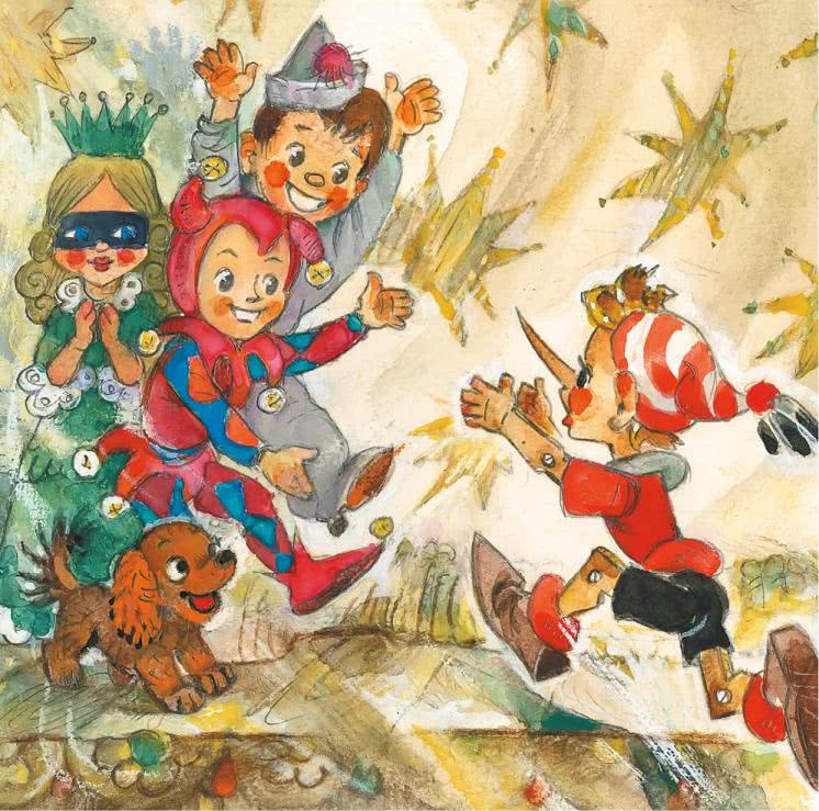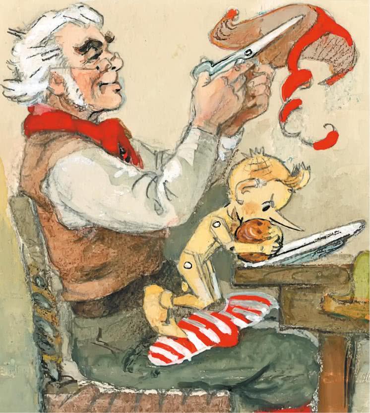 Когда он смастерил ей лицо, кукла сама раскрыла глаза, у неё вытянулся длинный, длинный нос.
