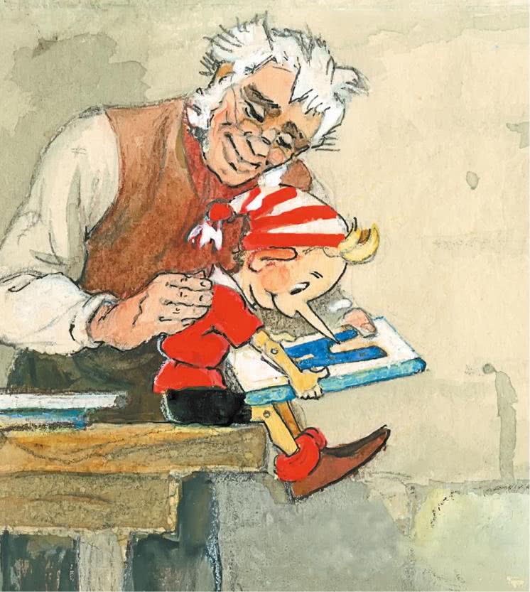 Однажды его друг, Джузеппе, принёс полено и сказал: «Вырежь из него куклу, научи её петь и танцевать, будет тебе славный помощник».