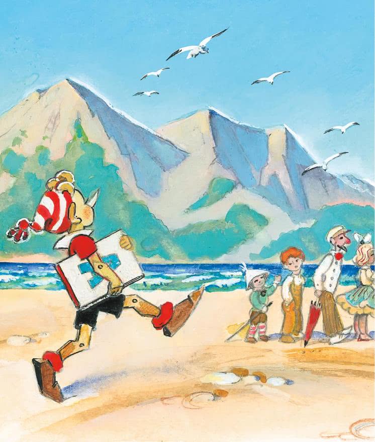 Толстой выбрал из своей сказки самые интересные места и придумал коротенькие надписи, чтобы к ним можно было нарисовать много картинок про все необыкновенные похождения Буратино по порядку. Так получилась книжка-картинка о Буратино и золотом ключике. Алексей Николаевич очень хотел, чтобы у малышей, которые ещё только учатся читать, была такая книжка.