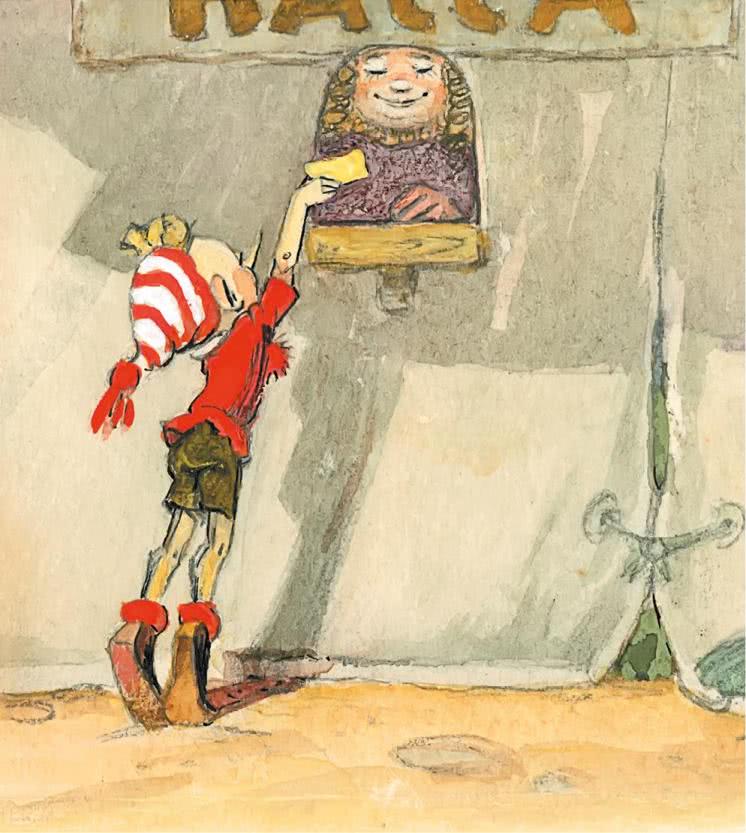 Он забыл, что обещал быть умненьким и благоразумненьким. Он продал свою азбуку и купил билет в кукольный театр.