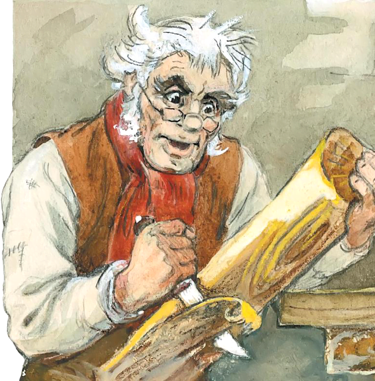 Карло начал строгать полено. Вдруг тоненький голосок запищал: «Ой, ой, ой, чего вы щиплетесь!» Карло очень испугался, но продолжал мастерить из полена куклу.