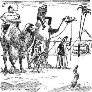 Отправились в глубь страны, в пустыню. По пустыне там ходит троллейбус, но в троллейбусе ехать неинтересно, и мы решили воспользоваться местными средствами сообщения. Я сел на двугорбого верблюда, Лом — на одногорбого, а Фукс — на осла. Получилась довольно живописная группа.