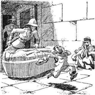 приобрели пару соленых слоновьих хоботов, ящик страусовых яиц, финики, саго, корицу, гвоздику и прочие пряности. Погрузили все это на яхту, я поднял отходной флаг, собираюсь в путь, но тут Лом докладывает рапортом, что Фукс опять пропал. Подождали — нет Фукса.Ну, я было хотел без него уходить, но потом поразмыслил и пожалел. Парень он ничего! Жуликоват, правда, но зато старательный и добрый. А тут, в Египте, народ доверчивый, соблазны на каждом шагу, последить за парнем некому. Ну и свихнется, пропадет, кончит каторгой… Словом, пошел я его выручать. Иду, вдруг вижу — на краю деревни толпа, откуда доносятся смех и вопли. Я заинтересовался, кликнул Лома, прибавил шагу, подбегаю и вижу: Фукс мой в печальном положении. Свернулся комочком, зарыл голову в песок, прикрылся шляпой. А над ним, понимаете, страус. Щиплет его за мягкие места и лупит ногами, как футбольный мяч. Кругом беспристрастные зрители смотрят, аплодируют, точно в цирке, поощряют эту птицу, хохочут, кричат…