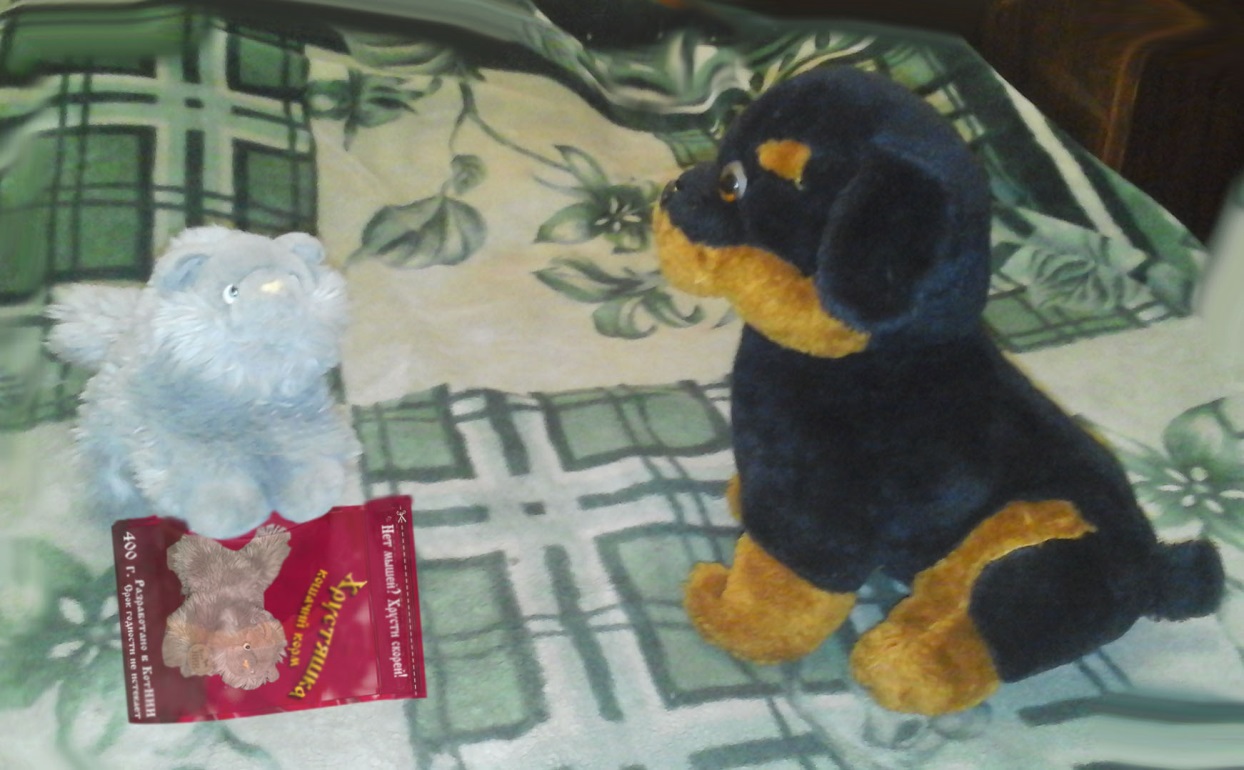 что-то рассказывал нескольким своим подельникам. Конура была обустроена плохо, кругом был бардак, и единственное, что состояло более-менее в порядке, так это был стол, на котором лежало различное оружие. Да, видно, мы псов недооценили: я-то думал, только Кошачий НИИ занимался разработкой «стволов»!Неожиданно, псы принялись ходить по комнате, а я, как назло, был слишком рядом, у дверей. Кто-то из Рыкалиных соучастников наступил на край моего маскировочного платка, и тот соскользнул с меня. Через пару мгновений я уже оказался окружён. Как выкручиваться? Тут я быстро-быстро завертел хвостом и, словно вертолёт, взлетел под потолок. Псы открыли сперва пасти от изумления, но Рыкала сообразил, чем прогоняют котов, и приказал стрелять в меня водой. Один из псов схватил валявшийся на полу шланг и направил его в мою сторону. Не медля, я скрутился в клубок, при этом не прекращая вертеть хвостом – так вода не могла попасть мне в мордочку. Я мужественно выдержал пару водных залпов, как тут кто-то, поняв, что водой меня не взять, предложил стрелять в меня огнём. Псы подбежали к оружейному столику и схватили довольно-таки кустарный огнемёт, валявшийся под ним. Но и тут я не растерялся – только направят на меня струю огня, как я делаю в воздухе сальто, отбрасывая языки пламени и теряя высоту, тем самым уходя от залпа. К слову сказать, я, пожалуй, впервые был рад своему промоканию – очень хорошо, что меня сперва облили, а потом стали палить, а не наоборот.