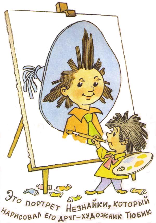 вежливый. Ему нравилось, когда его называли по имени и отчеству, и не нравилось, когда кто-нибудь называл его просто Сиропчиком. Жил ещё в этом доме охотник Пулька. У него была маленькая собачка Булька и ещё было ружьё, которое стреляло пробками. Жил художник Тюбик, музыкант Гусля и другие малыши: Торопыжка, Ворчун, Молчун, Пончик, Растеряйка, два брата — Авоська и Небоська. Но самым известным среди них был малыш, по имени Незнайка. Его прозвали Незнайкой за то, что он ничего не знал.Этот Незнайка носил яркую голубую шляпу, жёлтые, канареечные, брюки и оранжевую рубашку с зелёным галстуком. Он вообще любил яркие краски. Нарядившись таким попугаем, Незнайка по целым дням слонялся по городу, сочинял разные небылицы и всем рассказывал. Кроме того, он постоянно обижал малышек. Поэтому малышки, завидев издали его оранжевую рубашку, сейчас же поворачивали в обратную сторону и прятались по домам. У Незнайки был друг, по имени Гунька, который жил на улице Маргариток. С Гунькой Незнайка мог болтать по целым часам. Они двадцать раз на день ссорились между собой и двадцать раз на день мирились.