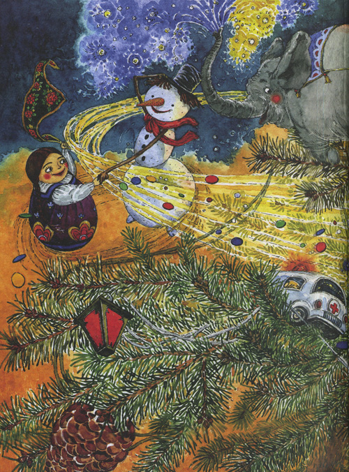 На балу, таком весёлом и коротком, каждой игрушке хочется быть самой красивой. Весь год, сквозь дрёму, они вспоминают праздник. Весь год мечтают о следующем. Весь год беспокоятся: каким он будет? Какую привяжут нитку? Как высоко повесят? Будет ли видно телевизор? Не разобьют? Удастся ли поболтать с новичками: мандаринами и конфетами, которые висят совсем недолго и никогда не ложатся в коробку?