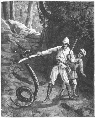 По широкой шее с темно-желтой чешуей он узнал ужасную «найю», или очковую змею, называемую так за два кружка на голове, напоминающие очки.