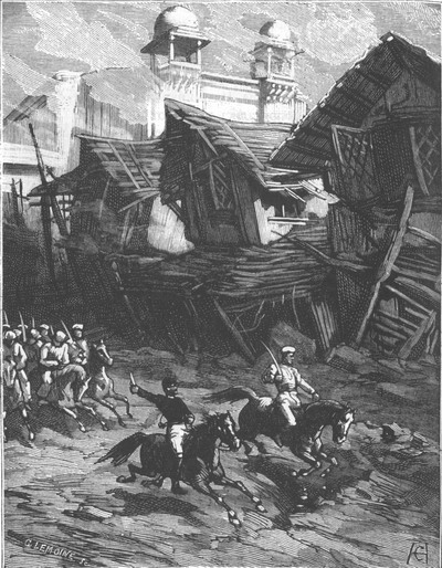Дальнейшие злоключения парижанина. — Прибытие в Мандалай. — Зал для аудиенций. — Фрике отказывается снять сапоги. — В присутствии короля. — Смертный приговор. — Казнь слоном. — Кассационная жалоба Фрике. — Почет. — Появление ящериц. — Музыка. — Как ведет себя ящерица перед землетрясением. — Побег. — Пушечный выстрел. — Кавалерийская атака. — Спасен. — Возвращение в Ранг. — Отплытие.