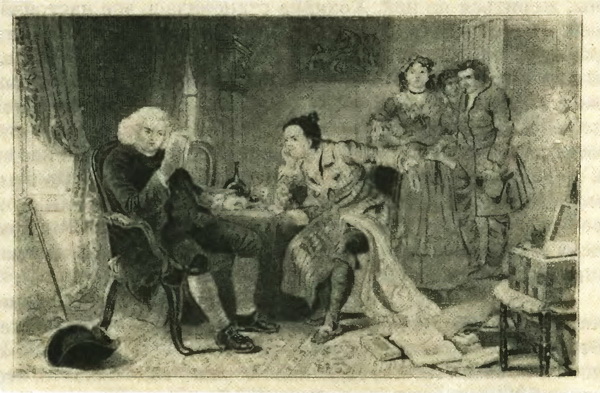 Сэмюэл Джонсон у Голдсмита читает рукопись «Векфильдского