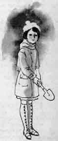 Я бегаю и прыгаю вокруг Памятника, размахивая шапкой, и вдруг вижу во дворе какую-то девочку. Я не заметил, как она появилась. Раньше я ее никогда не видел. Интересная девочка. Тоненькая такая, как цветок колокольчик! Только одета она странно. Я-то одет не странно: я в валенках, шубе и шапке-ушанке. А на девочке желтое кожаное пальтишко, желтая шапочка с помпонами и высокие желтые ботинки, зашнурованные до колен. Я никогда не видел таких ботинок!