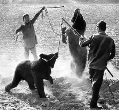 Специально для фотографа была показана программа особая. А у Джайпура, возле дороги, мы увидели пару медведей с мальчишками-дрессировщиками. Тут представление сопровождалось клубами пыли. Ловко орудуя палками, два повелителя заставляли медведей полностью выложиться — звери вразвалку ходили по кругу, плясали и так азартно валялись, как будто на них опустился рой пчел. Представление закончилось требованием «большого бакшиша». Но и четверть его была хорошей наградой артистам. Мальчишки, сунув за пазуху деньги, поспешили вознаградить и медведей — дали им по банану. Это был «пряник», который действует наравне с «кнутом» (палкой) при всех дрессировках — в больших цирках и у бродячих одиноких артистов.