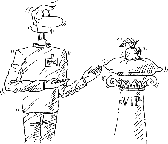 «Вы уже наш клиент, а мы любим своих клиентов, любим им дарить подарки и помогать… Мы дарим вам этот бонус! Кроме того, мы бы хотели узнать, как вам наша продукция? Что понравилось? Чего не хватает? Все, что вам понравилось, и все, чего вам не хватает, есть в покупке». И здесь идет продажа основного продукта.Если у клиента есть финансовые возможности и видно, что он может купить столько же или больше, чем несколько более мелких покупателей, вы должны посвятить ему все свое время и старания.
