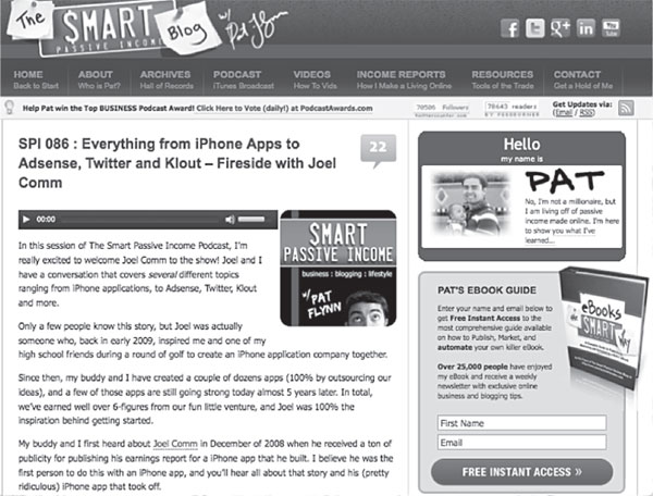 Рис. 8. Форма подписки на боковой панели сайта smartpassiveincome.com