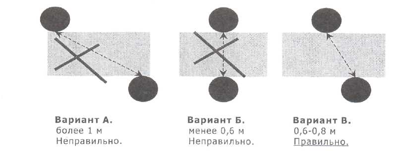 Необходимо при посадке следить за тем расстоянием, которое установилось между специалистом по продажам и собеседником. Расстояние не должно быть слишком маленьким или очень большим. Например, расстояние менее 50-60 см означает проникновение в «интимную зону» покупателя и может быть ему неприятно, так как в этой зоне он общается с
