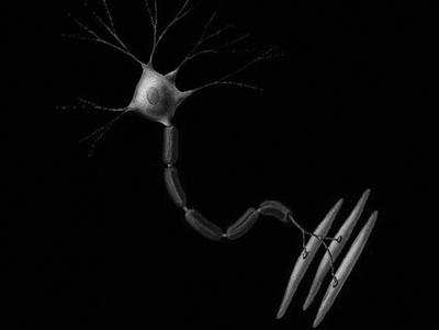Каждое мышечное волокно иннервируется лишь одним двигательным нейроном, в то время как каждый двигательный нейрон, в зависимости от функции мышц, иннервирует до нескольких тысяч мышечных волокон.