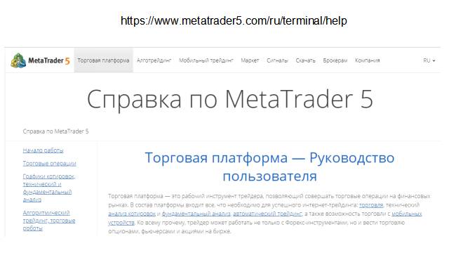 Более подробно про платформу MetaTrader 5 и про ее интерфейс можно почитать в соответствующей справке.