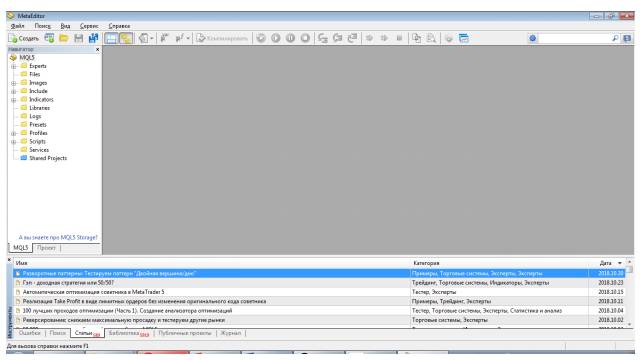 нагло брать деньги за книгу, в которой пересказывается общедоступная справка.Также помимо терминала MetaTrader 5, нас интересует редактор MQL5, который можно открыть либо с помощью ярлыка, либо в меню Сервис терминала MetaTrader 5.