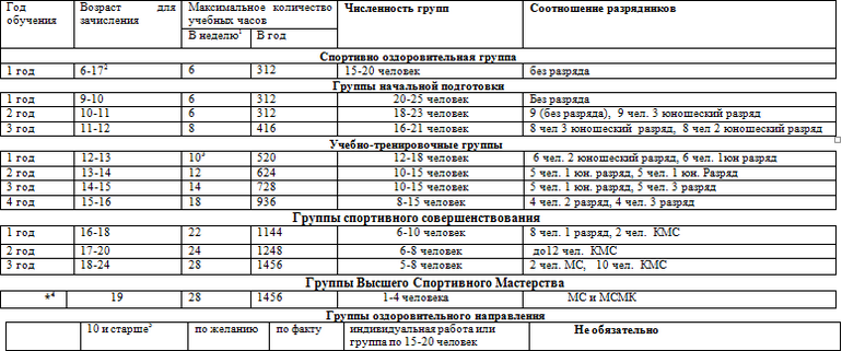 * Указывается только минимальный возраст зачисления в спортивную школу. * ГЗ формируются из всех желающих. Время работы на усмотрение тренера-преподавателя.