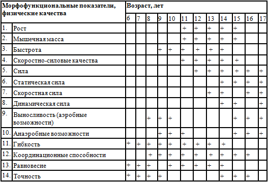 Таблица 31 Примерные сенситивные (благоприятные) периоды развития двигательных качеств