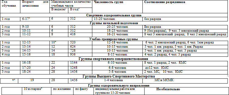6 Возраст в группах спортивного оздоровления с 10 лет и старше.