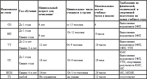 * Указывается только минимальный возраст зачисления в спортивную школу. * ГЗ формируются из всех желающих. Время работы на усмотрение тренера-преподавателя.