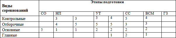Показатели соревновательной нагрузки в годичном цикле