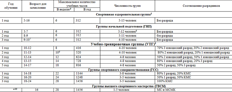 • Указывается только минимальный возраст зачисления в спортивную школу.