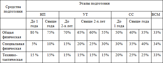 2) неуклонное возрастание объема средств общей и специальной физической подготовки, соотношение между которыми постепенно изменяется: из года в год увеличивается удельный вес объема СФП (по отношению к общему объему тренировочных нагрузок) и соответственно уменьшается удельный вес ОФП;