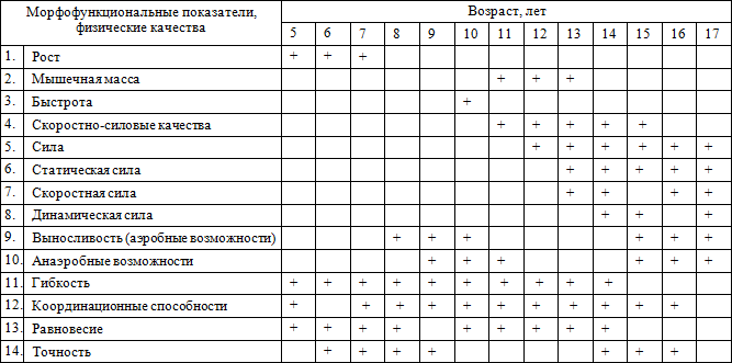 Примерные сенситивные (благоприятные) периоды развития двигательных качеств